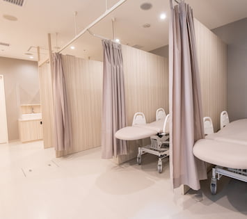 大腸カメラ検査に必要な下剤の服用は、他の人の目を気にせず個室で対応できます。検査後も内視鏡室からストレッチャーで移動してゆっくりお休みになれます。